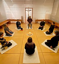 Katholische Stadtkirche Frankfurt Meditation - eine zauberhafte Reise in die Stille Ayhan Can Die Gruppe im Meditationsraum von Heilig Kreuz. FRANKFURT, 05.07.2024 Meditation - eine zauberhafte Reise