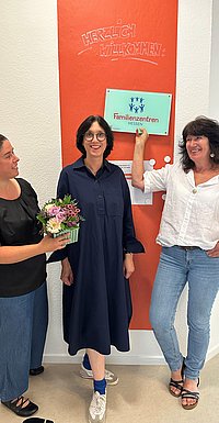 Katholische Stadtkirche Frankfurt Familienbildung ist nun Familienzentrum Katholische Familienbildung Agnes Maagh, Sigrid Kemler und Christel Oettinghaus (von lins) freuen sich über das neue Schild. F