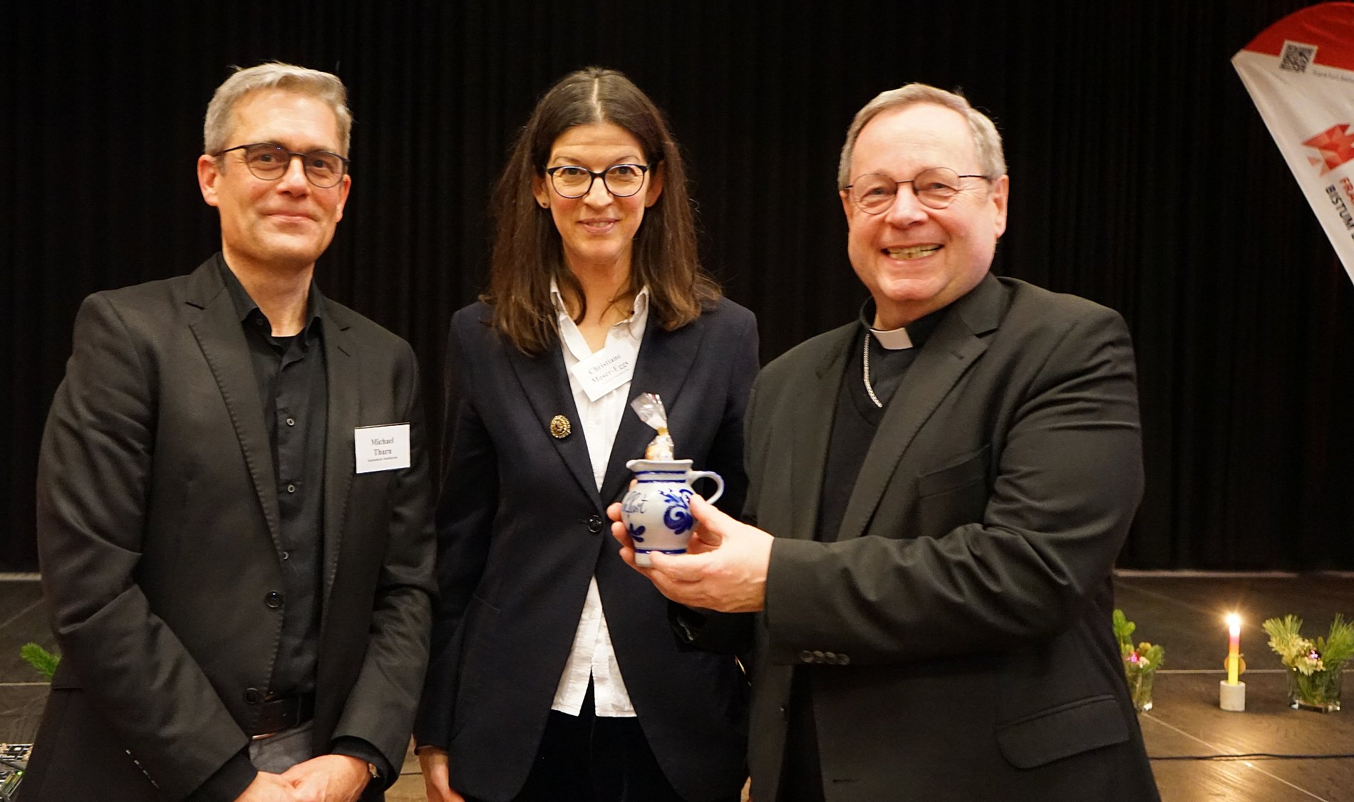 In der nachfolgenden Diskussion sagte Michael Thurn, Leiter der katholischen Stadtkirche in Doppelspitze mit Christiane Moser-Eggs, dass die Kirche ihren Glauben vertrete, indem sie Verantwortung in der Stadtgesellschaft übernehme: „Wir müssen uns darin üben, unser Christsein zu bezeugen. Das würde ich mir wünschen, auch wenn wir über Geld und Ressourcen sprechen.“